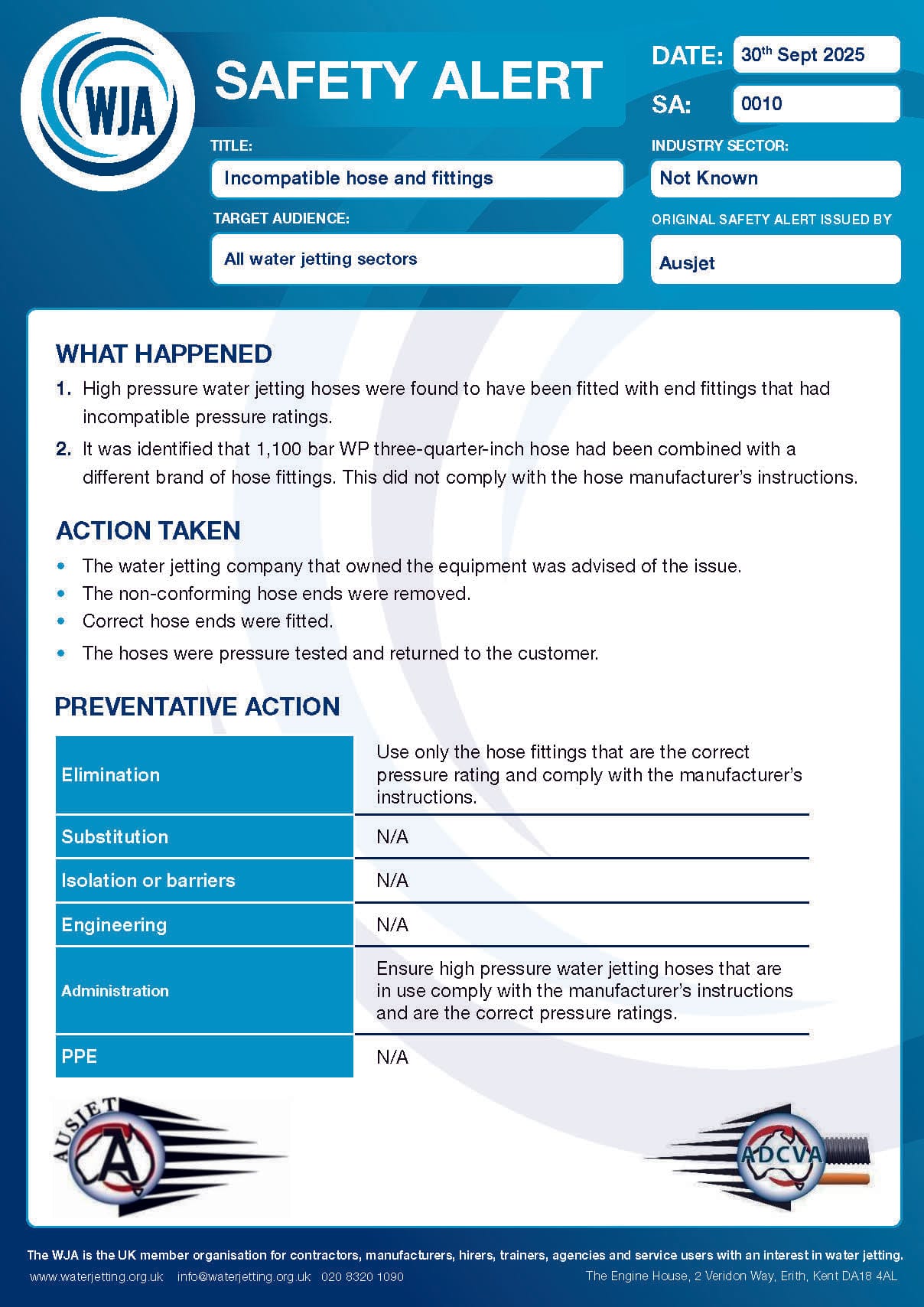 Incorrect Fitment of HP Water jetting Hoses