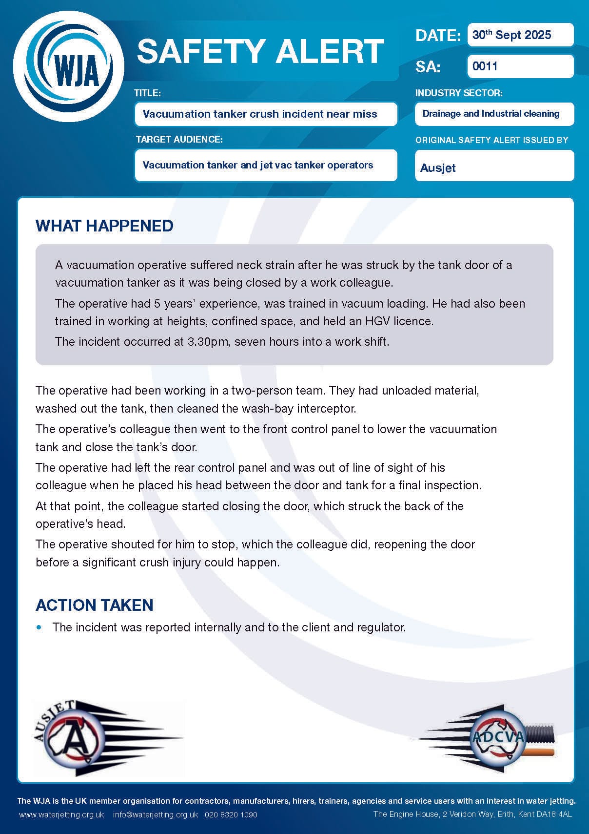 Vacuumation tanker crush incident near miss