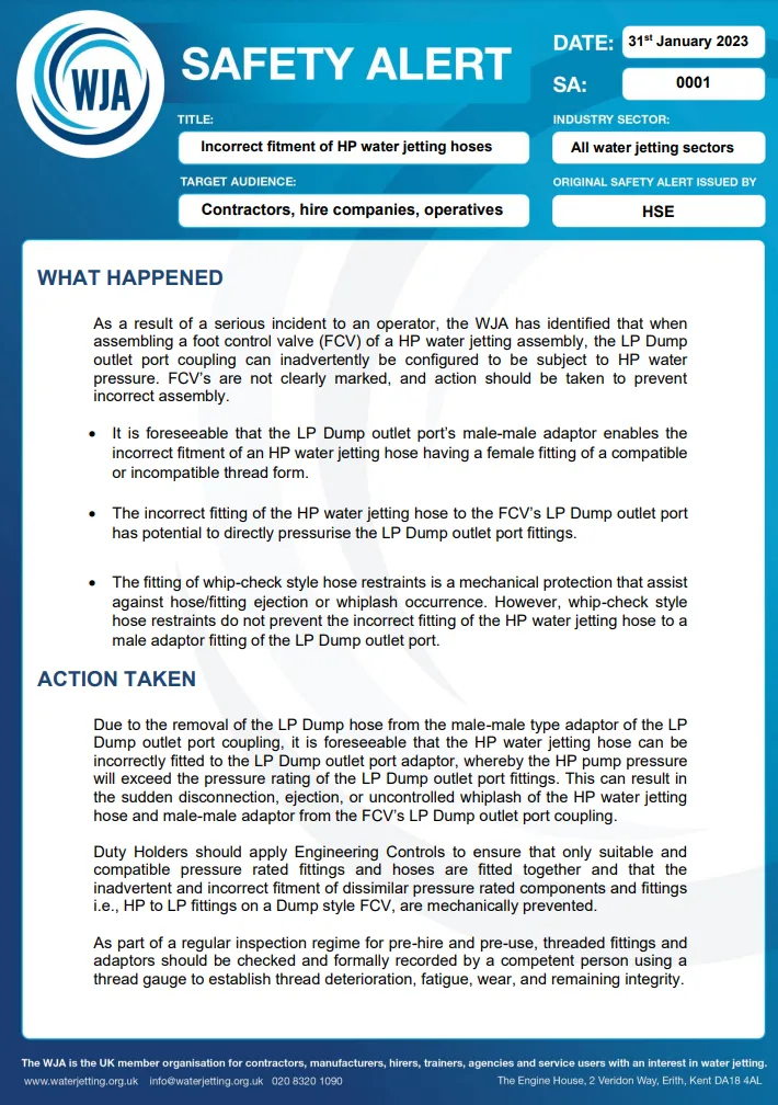 Incorrect Fitment of HP Water jetting Hoses
