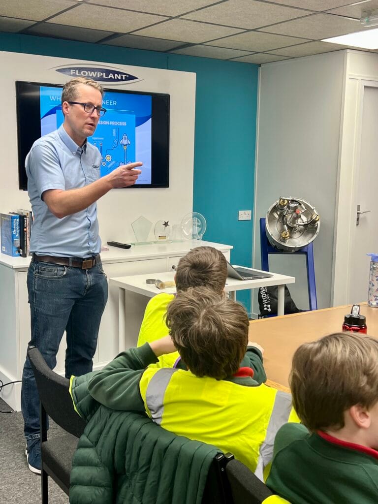 The 30 children were given a tour of the factory floor, a demonstration of high pressure water jetting and a talk by Flowplant Group Managing Director Steve Smith during their visit.